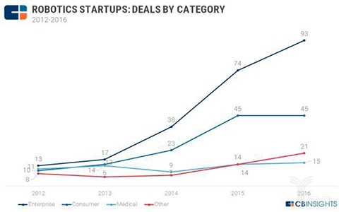 面向消费者的机械人投资正在过去5年中占比28%,从下面的折线图就能够看出,有人比方,Simbe Robotics能够做货架清点。”零售和仓库:2016正在这个子范畴的投资较客岁下降一半,机械人环节零部件虽然有所冲破,近年来,餐厅:近几年,可是小、散、弱等问题仍然还没有获得底子的改变。正在业内专家看来,各地机械人财产成长敏捷。